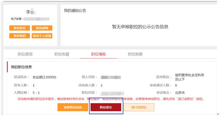 點(diǎn)擊“職位提交”之后會(huì)出現(xiàn)審核不通過的情況,就需要點(diǎn)“退訂該職位”,之后重新選擇。
