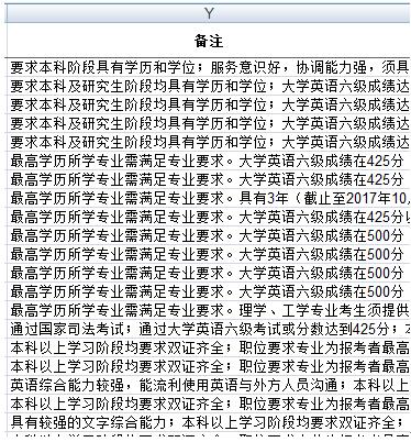 這些職位選擇出來之后,考生必須認(rèn)真瀏覽“備注”欄,備注這一欄是包含大量信息,會列出學(xué)歷專業(yè)、資格能力、性別、工作經(jīng)歷性質(zhì)等各個方面的要求。