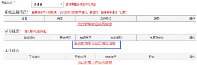 在填寫學習經歷時要專門填寫“專業類別”,很多考生對自己的專業類別不是很清楚,考生可以根據自己的學歷情況,選擇相應專業大類,不能確定的填寫其他。
