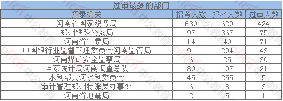 截止到30日18時,通過審核人數前三位的部門依次是:河南省國家稅務局、鄭州鐵路公安局、河南省氣象局,三部門通過審核總人數達570人,占通過審核總人數的84.69%。