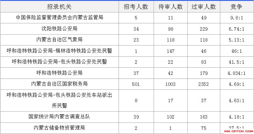 [31日18時]2018國考報名數據:內蒙古3843人過審 最熱職位競爭129:1