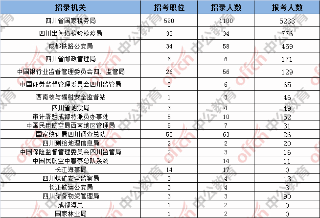 為幫助廣大考生更清晰的了解今日報名情況,四川中公教育整理了已審核通過人數的部門,此數據供廣大考生參考: