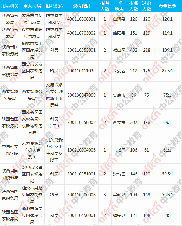 [2日9時]2018陜西國考報名人數(shù)統(tǒng)計:陜西5228人過審 最熱職位120:1