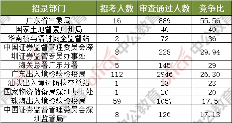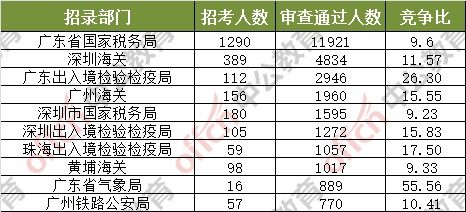 截止到2日16時(shí),通過審核人數(shù)前三位的部門依次是:廣東省國家稅務(wù)局、深圳海關(guān)、廣東出入境檢驗(yàn)檢疫局,三部門通過審核總?cè)藬?shù)達(dá)19701人,占通過審核總?cè)藬?shù)的62.2%。