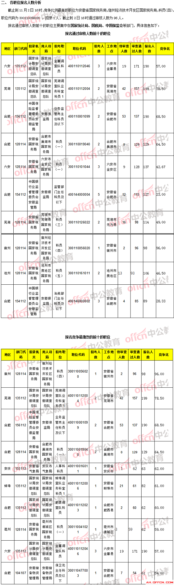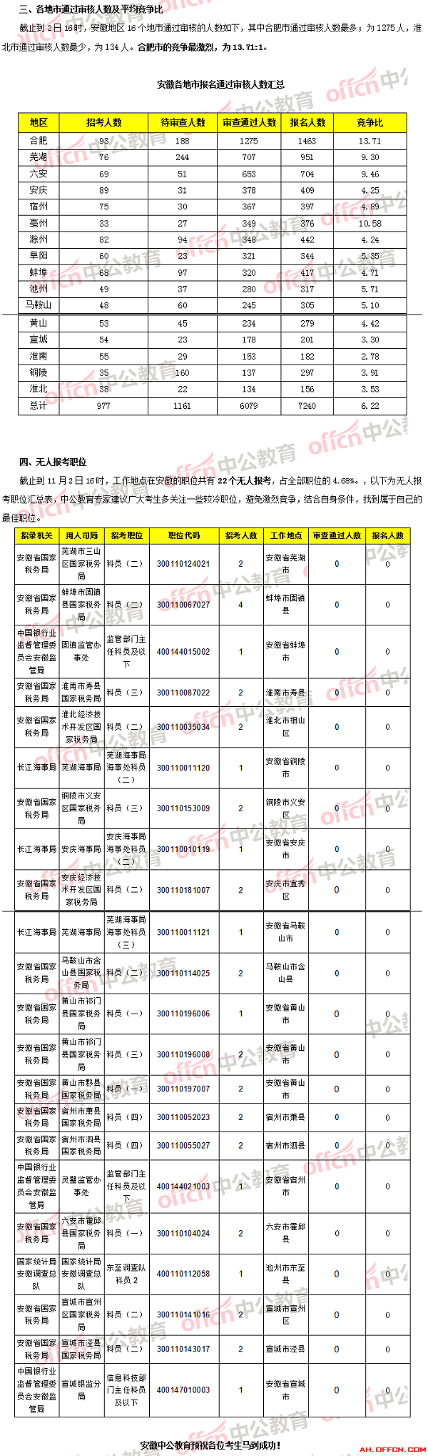 【11月2日16時】2018國考報名人數統計:安徽7240人報名,6079人通過審核