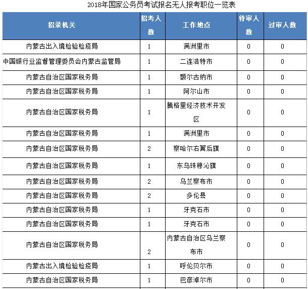 2018國考報名人數(shù)分析:內(nèi)蒙古10257人過審 最熱職位245:1【11月2日16時】