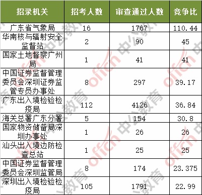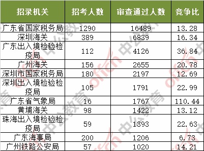 截止到3日16時,通過審核人數(shù)前三位的部門依次是:廣東省國家稅務(wù)局、深圳海關(guān)、廣東出入境檢驗檢疫局,三部門通過審核總?cè)藬?shù)達27454人,占通過審核總?cè)藬?shù)的61.2%。