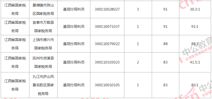 截止到3日16時,競爭比例的職位為國家統計局江西調查總隊國家統計局江西調查總隊宜春調查隊業務科科員一職,招錄1人,截止到3日16時通過人數為177人,位列第二的江西省國家稅務局上饒市上饒縣國家稅務局基層分局科員僅126:1