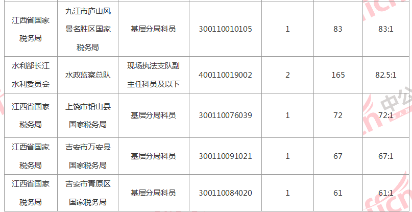 報名通過審核人數前十的職位主要集中在江西省國家稅務局、國家統計局江西調查總隊、水利部長江水利委員會等部門,具體信息如下: