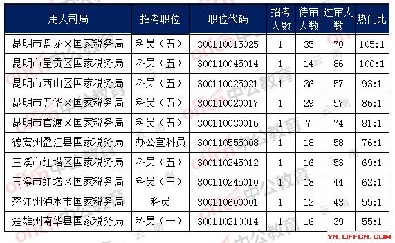【截止3日16時】云南省2018國考國稅報名人數達7178,仍23職位無人報考