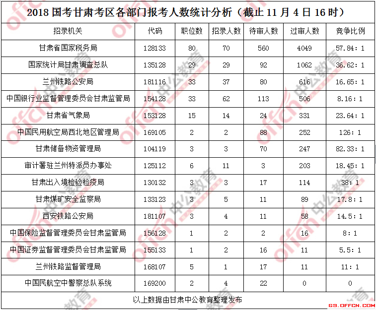 [11月4日16時(shí)]甘肅2018國(guó)考報(bào)名人數(shù)統(tǒng)計(jì):過審7565人 最熱競(jìng)爭(zhēng)比例489:1