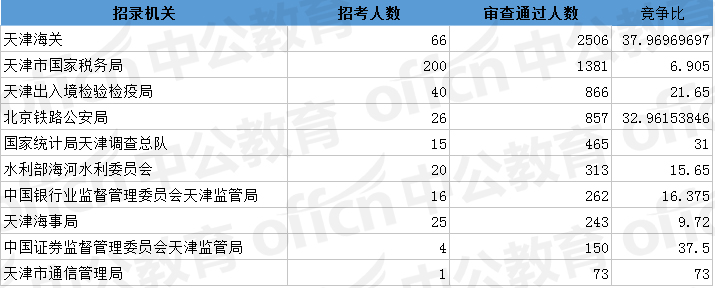 截止到5日09時,通過審核人數前三位的部門依次是:天津海關、天津市國家稅務局、北京鐵路公安局,三部門通過審核總人數達4753人。