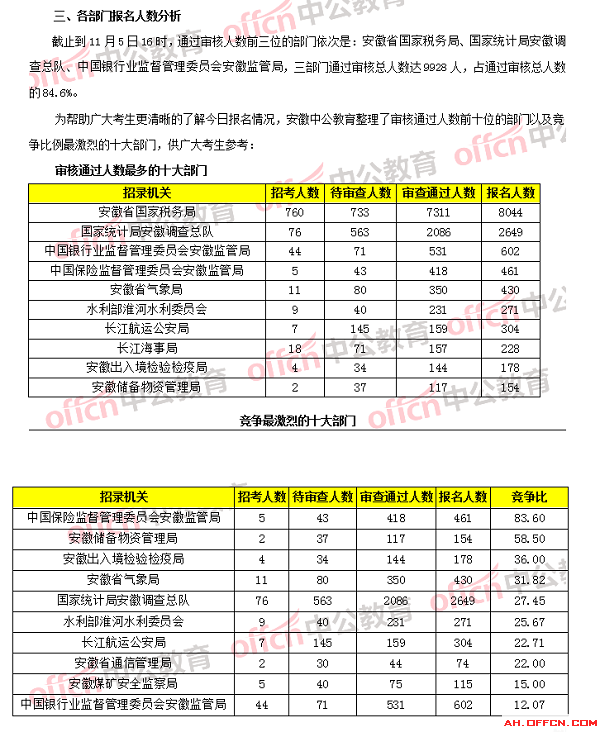 【11月5日16時】2018國考報名人數統計:安徽通過審核總人數破萬,還有8個職位無人報考