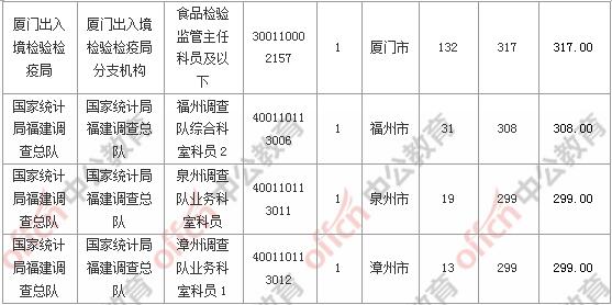 報名通過審核人數(shù)前十的職位主要集中在福建省國家稅務(wù)局、廈門出入境檢驗檢疫局、廈門海關(guān),具體信息如下: