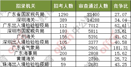 截止到6日16時,通過審核人數(shù)前三位的部門依次是:廣東省國家稅務局、深圳海關、廣東出入境檢驗檢疫局,三部門通過審核總人數(shù)達54700人,占通過審核總人數(shù)的60%。