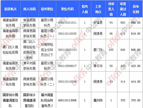 截止到6日16時,工作地點在福建的職位共有8個無人報考,占全部職位的3.61%。下面是無人報考職位一覽表,中公網校專家建議廣大考生多關注一些較冷職位,避免激烈競爭,結合自身條件,找到屬于自己的職位。