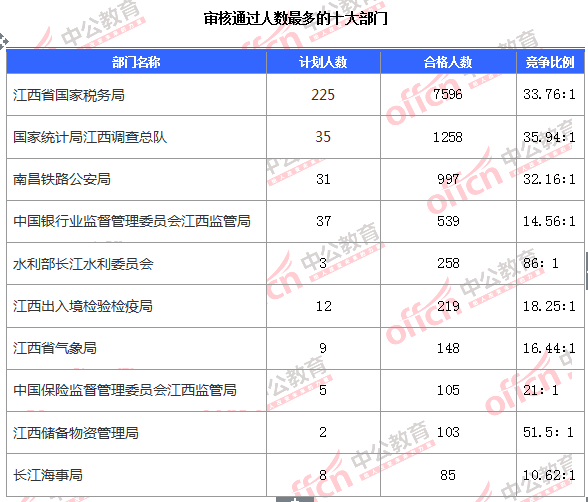 截止到6日16時,通過審核人數(shù)前三位的部門依次是:江西省國家稅務(wù)局、國家統(tǒng)計局江西調(diào)查總隊、南昌鐵路公安局,三部門通過審核總?cè)藬?shù)達10851人,占通過審核總?cè)藬?shù)的94.3%。