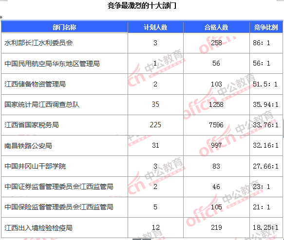 為幫助廣大考生更清晰的了解今日報名情況,中公教育整理了審核通過人數(shù)前十位的部門以及競爭比例最激烈的十大部門,供廣大考生參考: