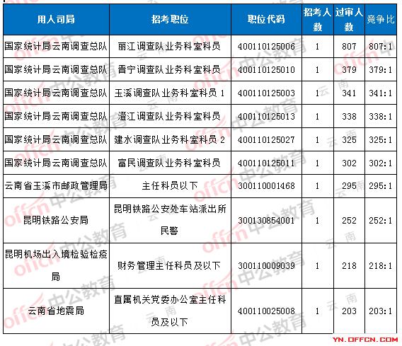 當前最受歡迎的崗位是國家統計局云南調查總隊,麗江調查隊業務科室科員,職位代碼:400110125006,招錄1人,807人報名,其中0人待審核通過,詳情如下圖: