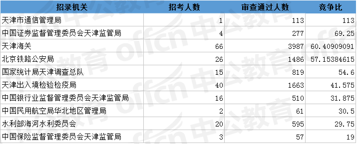 截止到7日16時,通過審核人數(shù)前三位的部門依次是:天津海關、天津市國家稅務局、北京鐵路公安局,三部門通過審核總?cè)藬?shù)達8357人。