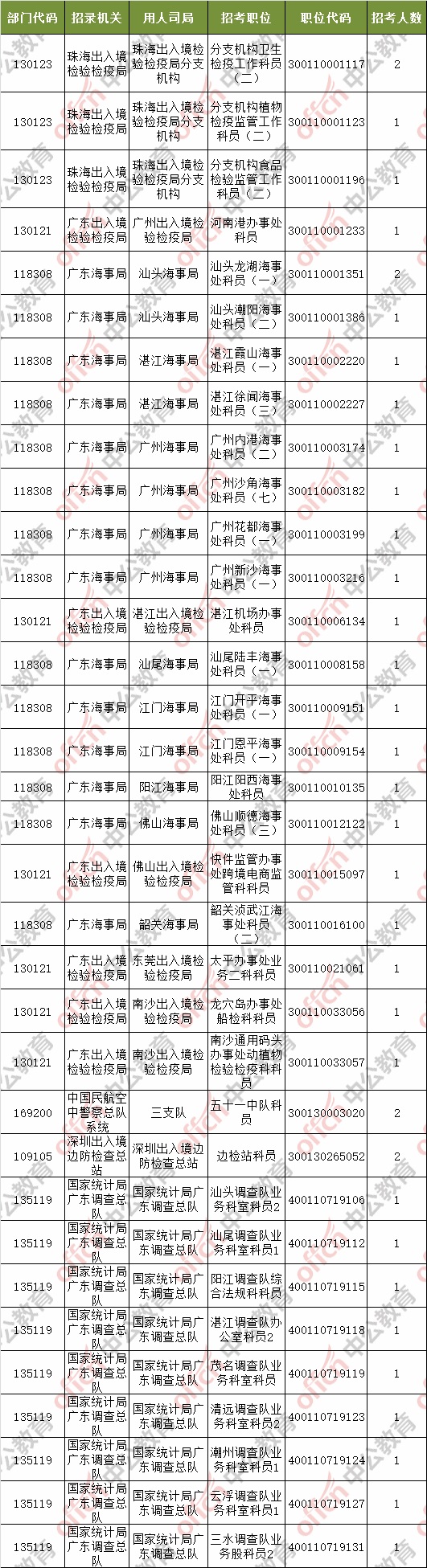 截止到7日16時,工作地點在廣東的職位共有34個無人報考,占全部職位的2.58%。下面是無人報考職位一覽表,中公網校專家建議廣大考生多關注一些較冷職位,避免激烈競爭,結合自身條件,找到屬于自己的職位。