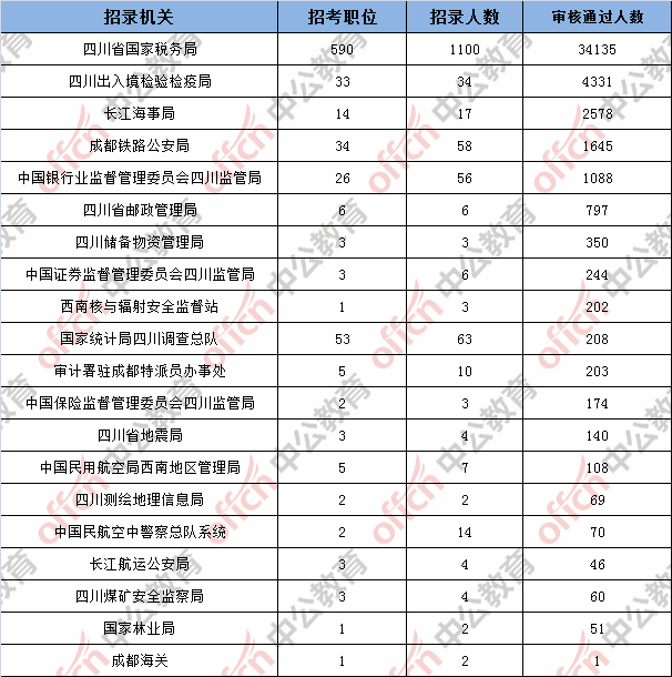 第五日報名通過審核人數前十的職位主要集四川省國家稅務局等部門,具體信息如下: