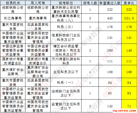 【7日16時】2018重慶國考報名人數統計:13757人過審,僅余1個職位無人報考