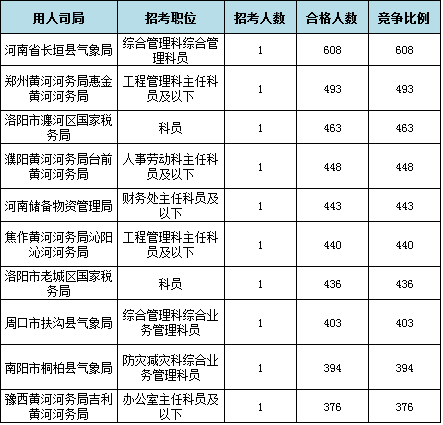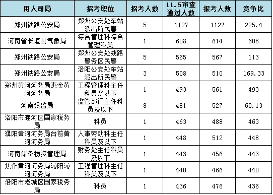 報名通過審核人數前十的職位主要集中在鄭州鐵路公安局、河南省氣象局、河南省國家稅務局,具體信息如下: