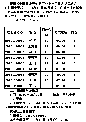 2015山西平陸縣招聘事業單位人員筆試公告(第2號)