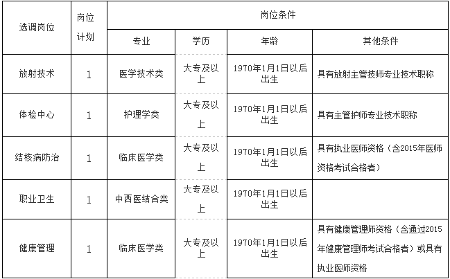 (一)縣疾病預(yù)防控制中心2016年選調(diào)工作人員崗位計(jì)劃表