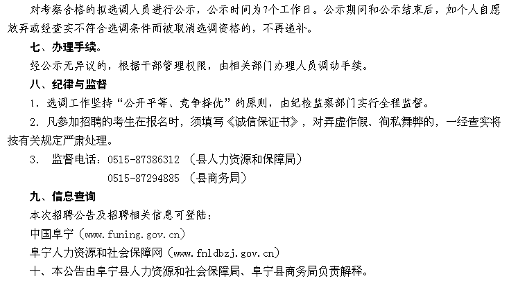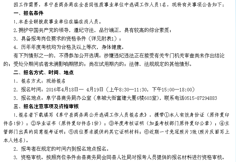 原標題:關于阜寧縣商務局公開選調工作人員的公告