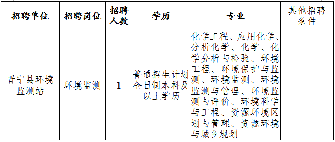 2016云南晉寧縣環境保護局事業單位招聘公告【1人】