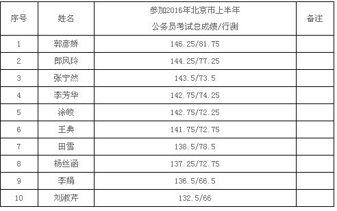 根據《北京市事業單位公開招聘工作人員實施辦法》(京人社專技發?2010?102號)的有關規定,按照《北京市部分事業單位定向公開招聘2016年合同期滿大學生村官工作公告》的具體要求,依據2016年北京市上半年公務員考試成績由高到低排序和1:5的面試比例,現將進入北京市環境保護監測中心定向公開招聘北京市2016年合同期滿大學生村官面試人選公告如下:
