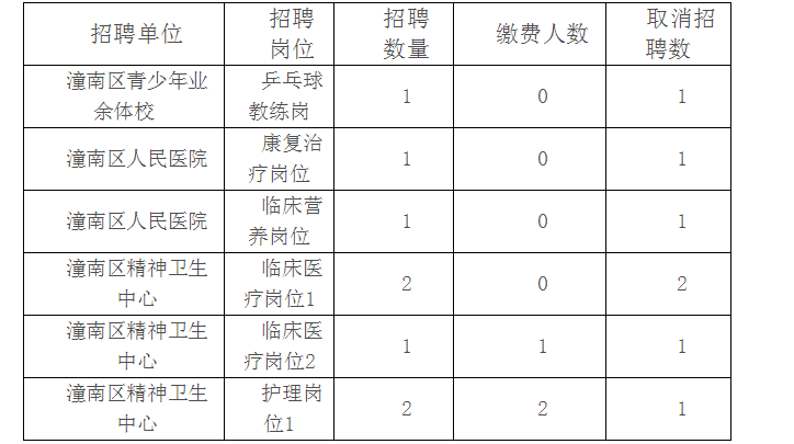 潼南區2016年三季度事業單位公開招聘工作人員現場報名繳費工作已經結束,根據各崗位報名繳費情況,按照《重慶市潼南區2016年三季度面向社會公開招聘事業單位工作人員簡章》相關規定,現對取消招聘名額的崗位予以公告。