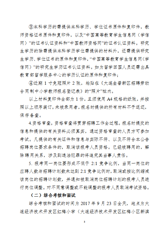 2017大連金普新區招聘勞動合同制中小學教師93人公告