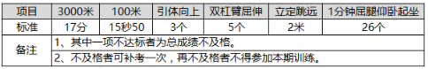 根據(jù)民航局要求,男生在取得安全員執(zhí)照前須參加民航局組織的安全員初始訓(xùn)練考核,體能考核項(xiàng)目及標(biāo)準(zhǔn)為: