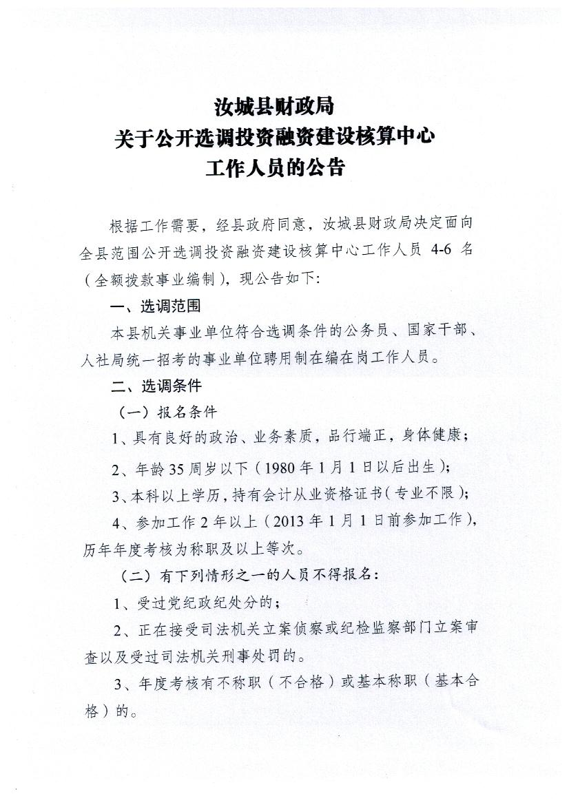 2015年湖南省汝城縣財政局投資融資建設核算中心選調公告