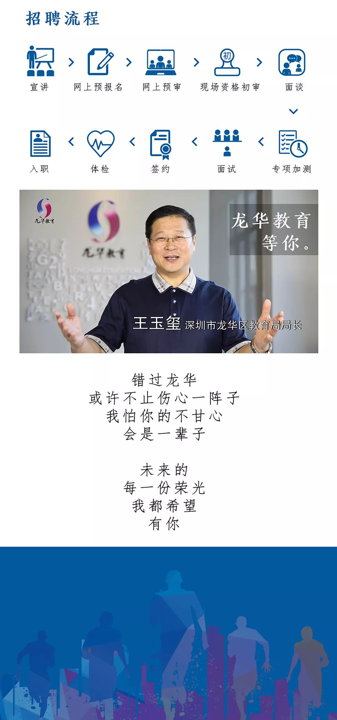 龍華為2017年新成立行政區,各項事業蓬勃發展,近3年教育總投入達120億元,每年新改擴建學校10+,機會多多;教師隊伍整體年輕,高級教師職稱(相當于副教授)職數存量充足,未來可期。你來了