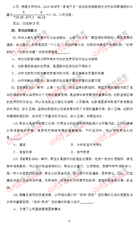 2012年上海市公務員考試行測(B卷)部分及答案解析