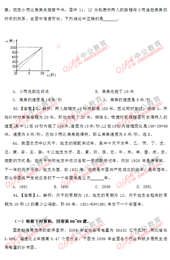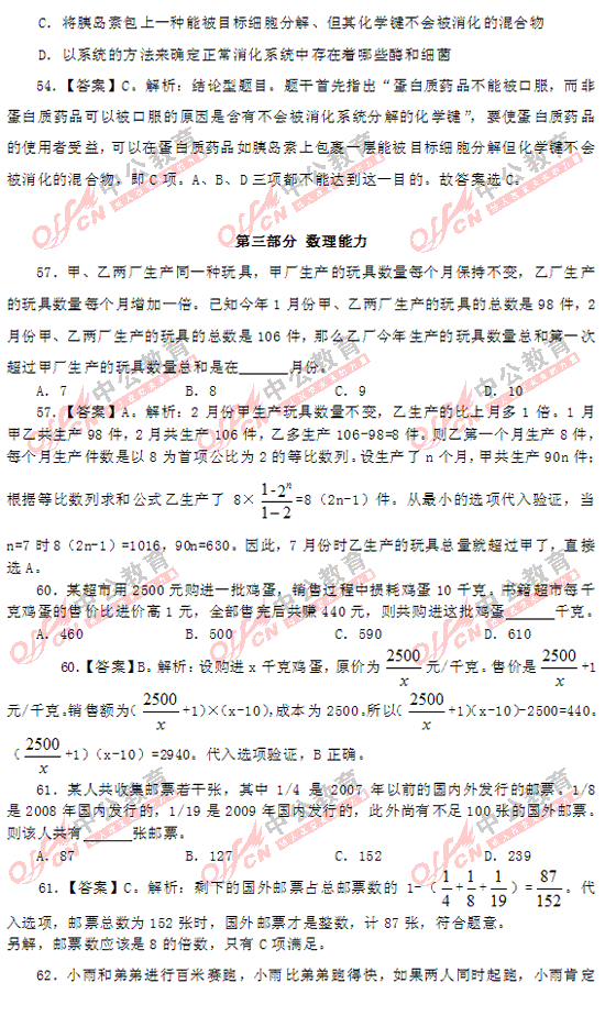 2011上海市公務員考試行測(A類)部分答案及解析