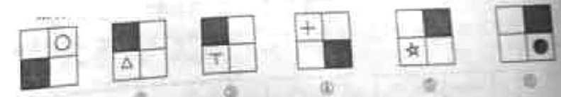 83.把下面的六個(gè)小圖形分為兩類,使每一類圖形都有各自的共同特征或規(guī)律,分類正確的一項(xiàng)是: